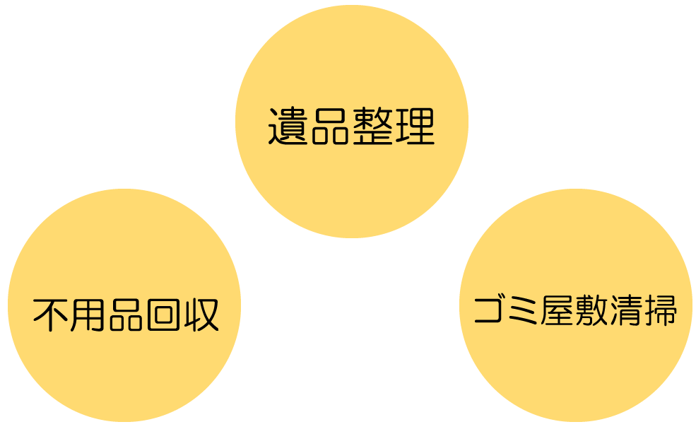 急なお引越しに伴う不用品の処分はもちろんですが、遺品整理やゴミ屋敷清掃の際に一緒に不用品回収をご利用いただければ、複数の業者とやり取りする必要もないので、お客さま自身の負担を減らすことができますよ。